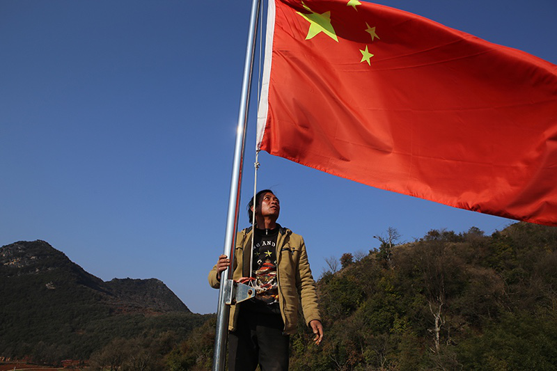 2月初的丘北,連日陰雨,是一年中最冷的時(shí)節(jié)。我先于拍攝團(tuán)隊(duì)幾天到了村里,想獨(dú)自在這里轉(zhuǎn)轉(zhuǎn),熟悉一下村民,篩選一下拍攝的人物。正當(dāng)我在一個(gè)泥濘的岔路口徘徊,尋思著是否要問(wèn)路去村主任家的時(shí)候,旁邊屋子里走出一個(gè)人,面容親善:“天好冷啊,進(jìn)來(lái)烤烤火吧!”他打招呼的方式如同熟人,一笑時(shí)露出兩排又白又整齊的牙齒。于是,他家擁擠的火塘邊又多了一個(gè)人。大家圍著火爐有一搭沒(méi)一搭地聊天,語(yǔ)調(diào)溫和小聲,沒(méi)話的時(shí)候大家也不覺(jué)得別扭,只聽(tīng)見(jiàn)玉米骨在火塘里噼啪作響。這是一個(gè)五代同堂的大家庭,招呼我的主人楊樹(shù)紅和妻子以及祖母、父母一起生活,兒子和女兒在廣東打工,已經(jīng)回村準(zhǔn)備過(guò)節(jié),兒子未婚,女兒則有了兩歲的孩子。楊樹(shù)紅的祖母出生于1922年,是這個(gè)村子里最老的老人,耳朵有些背。我大聲問(wèn)她是否還記得年輕時(shí)候踩花山,她拍著我的手背說(shuō):“17歲我就去踩花山嘎!好玩嘎!”兒媳笑著解釋說(shuō):“估計(jì)她說(shuō)的是17歲踩花山的時(shí)候碰到爺爺,被他拖媳婦拖走的事呢。”祖母年紀(jì)太大,看著她手上和臉上深深的褶皺,不知藏了多少往事。