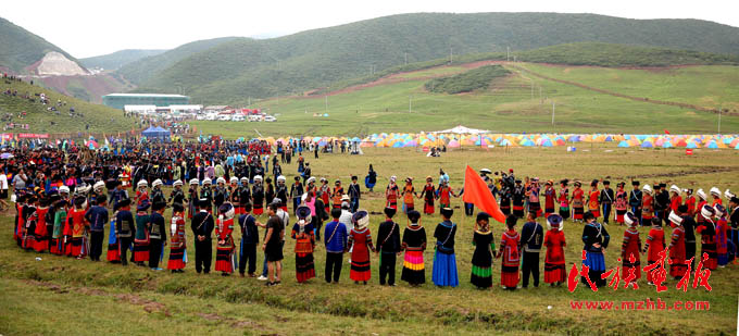 2017年7月17日,在海拔3000米的四川省涼山彝族自治州昭覺縣谷克德濕地公園,聚集了上萬名穿戴鮮艷彝族傳統(tǒng)服飾的彝族同胞,歡慶一年一度的火把節(jié)。這里是涼山彝族傳統(tǒng)火把節(jié)的主會(huì)場(chǎng),與往年不同的是,今年,大涼山彝族傳統(tǒng)火把節(jié)的主會(huì)場(chǎng)從西昌市市區(qū)轉(zhuǎn)移到了30余公里外的谷克德濕地公園,這里群山環(huán)繞,草木葳蕤,濕地上還生長著一片片黃色鳶尾花。往年在體育場(chǎng)中進(jìn)行的斗雞、斗牛、斗羊等傳統(tǒng)競技賽事,都在這片濕地草原上舉行,仿佛回歸到了這個(gè)古老的節(jié)日最原始的樣子。