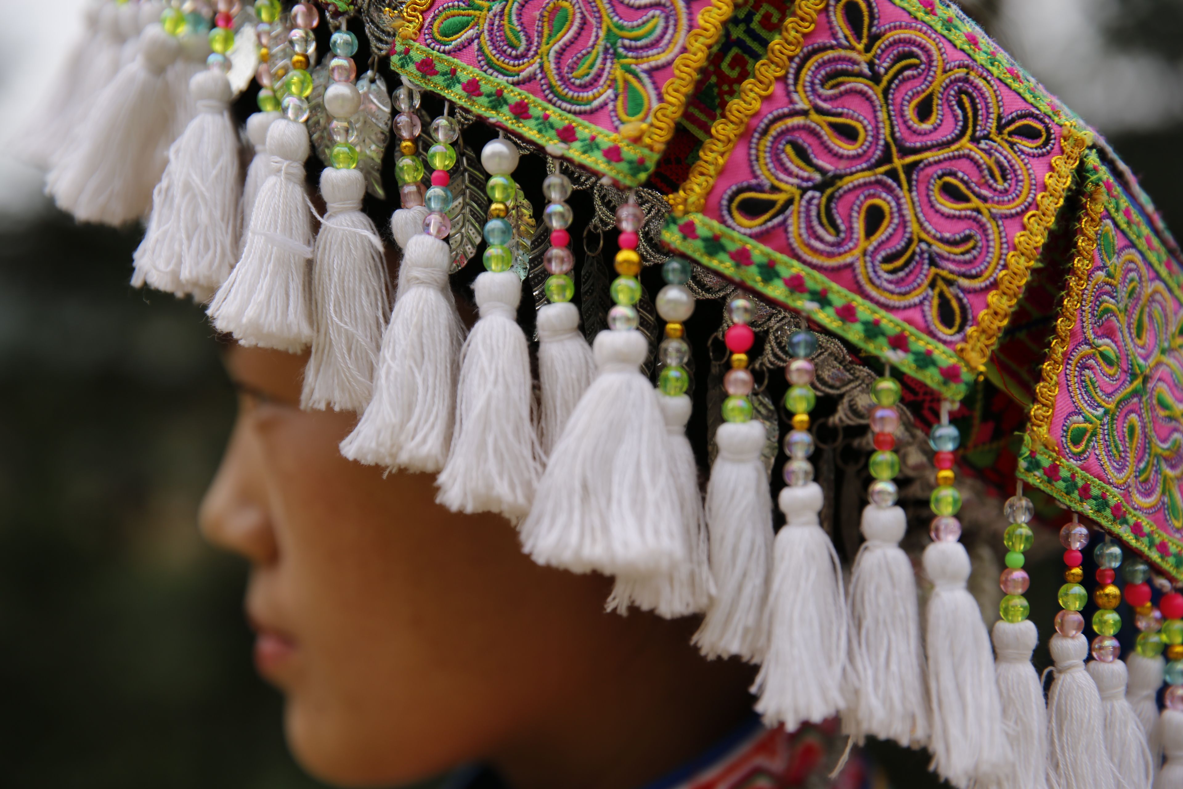 圖片說明:貴州貴陽苗族女子服飾花帽
