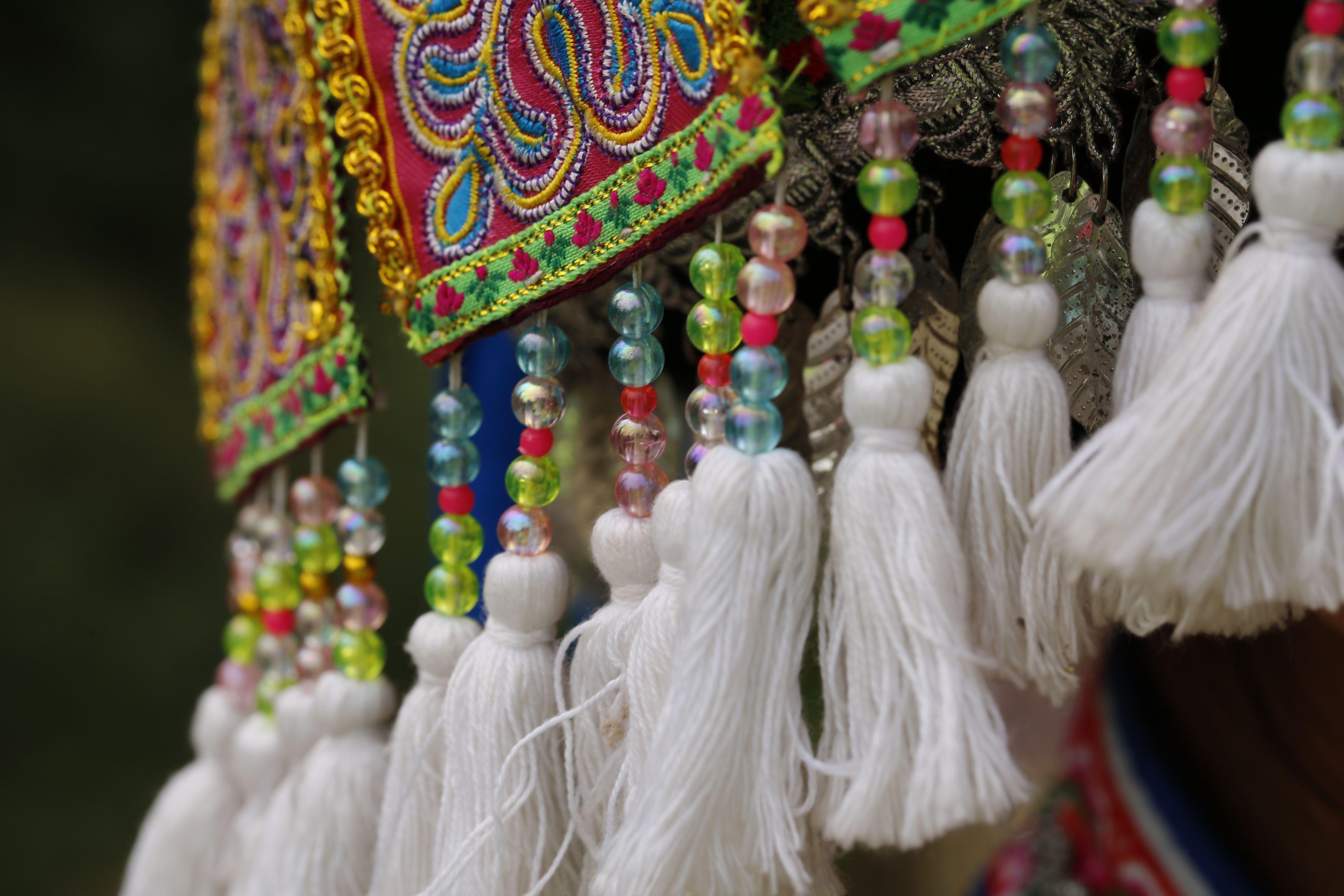 苗族女子服飾花帽-側(cè)面繡花及裝飾2