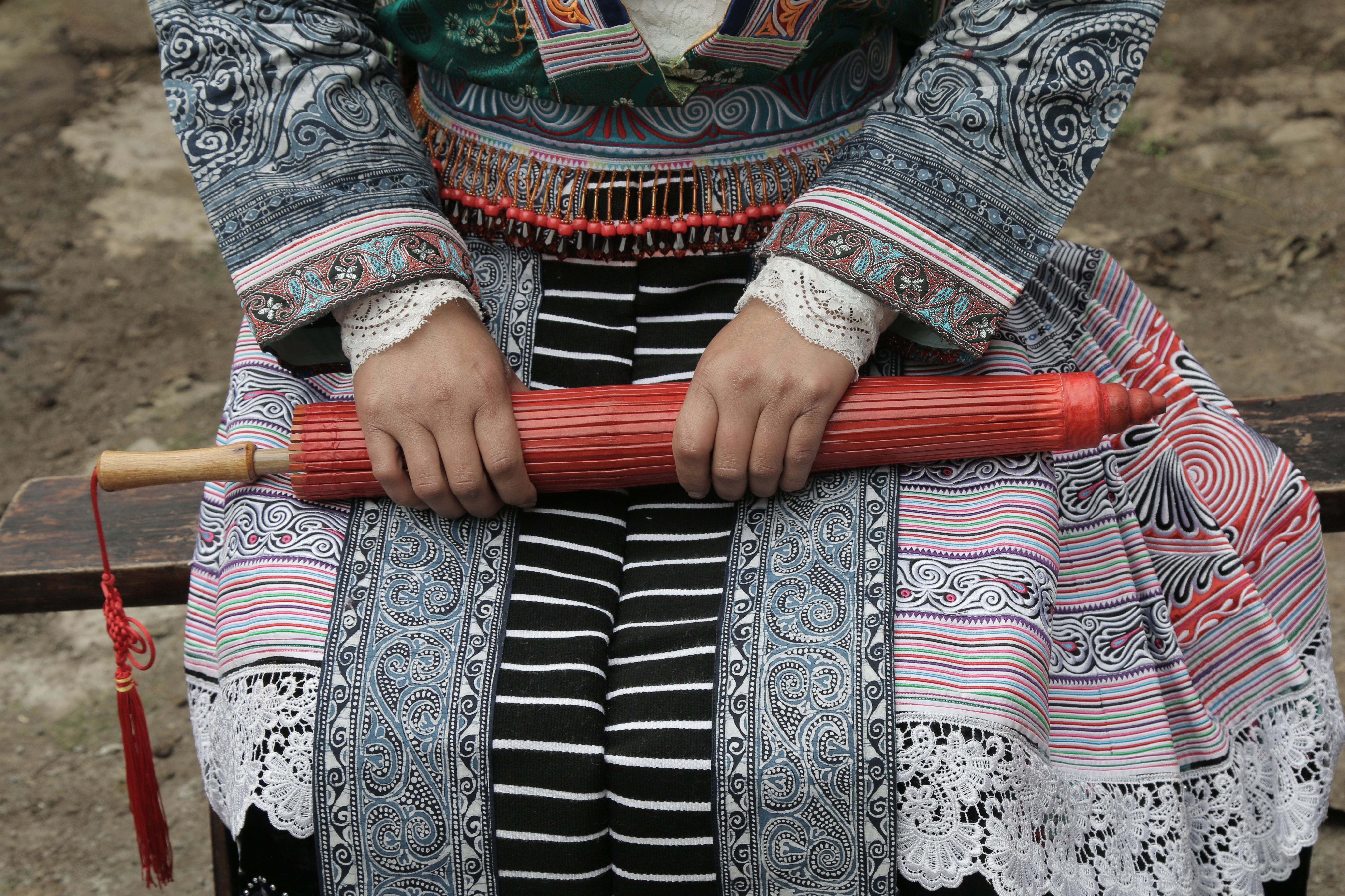 圖片說明:貴州貴陽苗族婚嫁接親隊伍