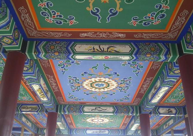 古建彩繪是中國獨有,歷史悠久,內(nèi)容豐富多彩,而且名目繁多,一般分為三類:旋子彩畫、和璽彩畫和蘇式彩畫。彩畫普遍使用于宮殿、寺廟、官衙、牌樓等建筑,它有著特有的施工過程,一般先批灰打底,其次繪畫放樣,最后設色涂刷。