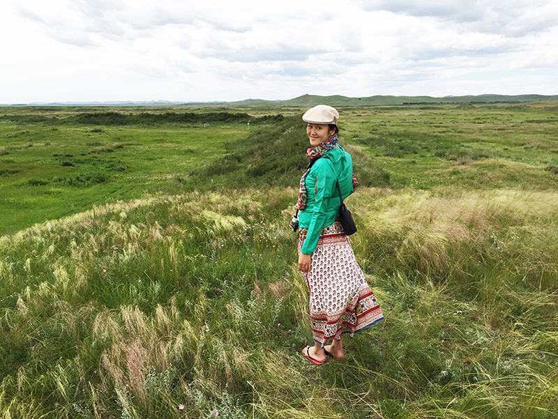 遠(yuǎn)遠(yuǎn)的,一輛嶄新的白色轎車在草原上揚(yáng)起一陣塵土,然后很快停在我們眼前。一對(duì)雍容華貴、穿著蒙古袍的俊男美女從車?yán)镒叱?,在午間強(qiáng)烈的陽光下閃閃發(fā)亮,氣場(chǎng)之強(qiáng)大的令人過目難忘。直到他們熱情地伸出雙手,我們才如大夢(mèng)初醒般上前拜見。前來的女子正是舒泥,而男子便是我們要拜訪的牧民家的男主人鋼寶勒道。
