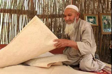 據(jù)史料記載,在宋代西遼統(tǒng)治時(shí)期,和田以桑樹(shù)皮為原料制作紙已經(jīng)很有名,成為當(dāng)?shù)鼐S吾爾族的一項(xiàng)重要家庭手工藝。宋朝的顧文薦所作的《負(fù)暄雜錄》中就曾有過(guò)如是記載:又扶桑國(guó)出芨皮紙,今中國(guó)惟有桑皮紙。