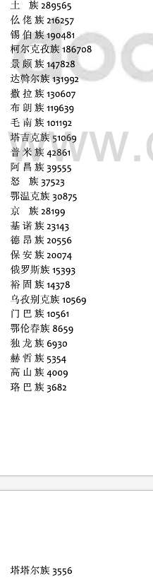 本規(guī)劃所稱的人口較少民族是指全國總?cè)丝谠?0萬人以下的28個民族。這些民族是:珞巴族、高山族、赫哲族、塔塔爾族、獨龍族、鄂倫春族、門巴族、烏孜別克族、裕固族、俄羅斯族、保安族、德昂族、基諾族、京族、怒族、鄂溫克族、普米族、阿昌族、塔吉克族、布朗族、撒拉族、毛南族、景頗族、達斡爾族、柯爾克孜族、錫伯族、仫佬族、土族。