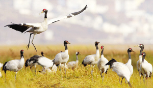 在草原腹地,隨時(shí)都會(huì)遇上藏野驢、藏狐貍,遠(yuǎn)遠(yuǎn)就能望見(jiàn)棲息在湖邊水草地上的珍稀黑頸鶴,甚至還能遇上草原的“清道夫”——金雕。