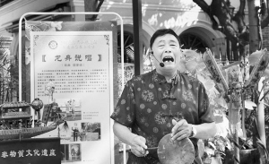 后來,在一個民俗文化節(jié)上,吳家耀手執(zhí)龍舟杖表演龍舟說唱的情景,引起了媒體的關(guān)注。他還帶著這一根龍舟杖,把龍舟說唱唱到了北京天壇,連不懂粵語的老北京也聽得津津有味。