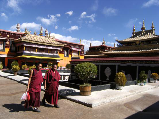 大昭寺位于西藏拉薩市中心。原名惹剎、邏些,后改稱覺康,即“釋迦佛殿”。亦稱“惹沙崔朗祖拉康”,意為“羊土神變寺”。9世紀(jì)改為“大昭寺”,意為“放經(jīng)書的大殿”。清代更名“伊克昭廟”。