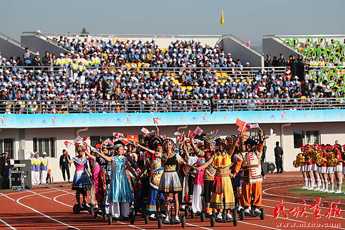 云南省第十一屆少數(shù)民族傳統(tǒng)體育運動會開幕式現(xiàn)場觀眾熱情高漲