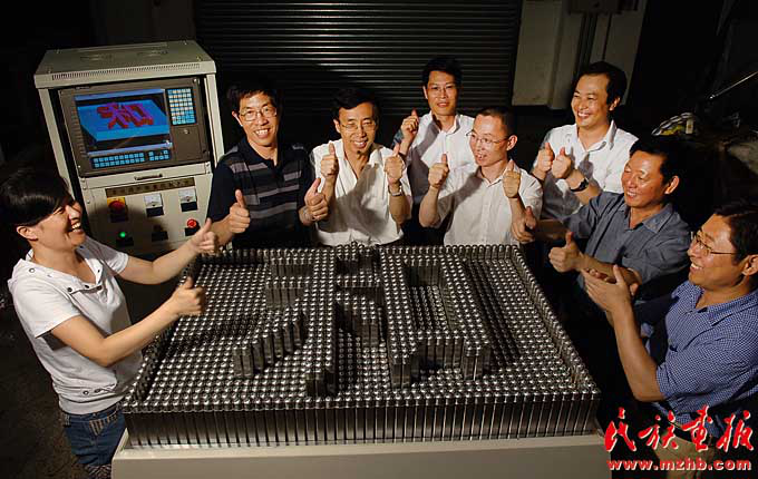 北京“鳥巢”,李明哲科研團(tuán)隊(duì)研發(fā)的“板材無(wú)模多點(diǎn)成形裝置”成功破解了“鳥巢”施工過程中遇到的難題