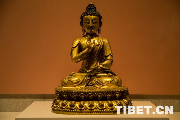 圖為正統(tǒng)款銅鎏金釋迦牟尼像,該像具有典型的中原漢地風格。攝影:姚浩然