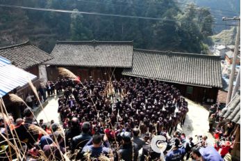 貴州省榕江縣三寶侗寨舉行“薩瑪節(jié)”民間祭薩儀式。當(dāng)天,數(shù)千名侗族同胞歡聚一堂,通過祭薩、舞稻草龍、稻草人行乞、唱耶歌、跳耶舞等活動(dòng)歡度“薩瑪節(jié)”。