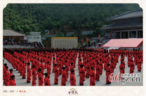 孔學(xué)堂背倚大將山,俯瞰花溪河,建筑面積12萬(wàn)平方米。一期工程于2011年7月3日奠基,2012年9月28日即孔子誕辰2563周年紀(jì)念日落成揭幕;二期工程于2013年10月開(kāi)工,將于2014年11月竣工。