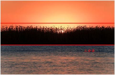 有的人可能就會問,地平線或者海平面的這個線,到底是放在哪條線上比較合適呢?主要原則可以稱為“頂天立地”,如果地面上的內容比較精彩的,就把這個地平線放得高一些,就是放到上面的1/3,也就是從上面數(shù)的第一條線上。如果天空的內容比較精彩的,比如說日出日落、彩霞滿天,地平線就放得低一些,放在最下面這條線上。