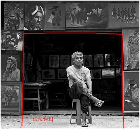 下面這三個素材就可以體現(xiàn)出包圍式或者框架式構圖。第一個,就是標準的框架,這個并不是擺拍,這是在緬甸的曼德勒,下午正好在街上走,就遇到一個簡易的小店鋪,生意也很清淡,店老板就坐在門口,我覺得這個畫面還是比較有趣,就隨意拍了一張。