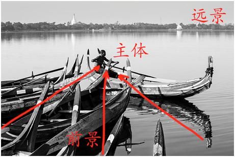 引導線的用處比較廣,在風光及環(huán)境人像都在應用。這張片子,雖然這個劃船的人是主體,但重點在于船形成的引導線。這個引導線把視線引向了主體的身上,然后看到主體身后比較亮的水面,又看到遠方的白塔,這些遠景如果沒有引導線,肯定是先看到最亮的地方,可能是一下就看到遠方的白塔,這種暗的引導線一般不太引起人的注意。