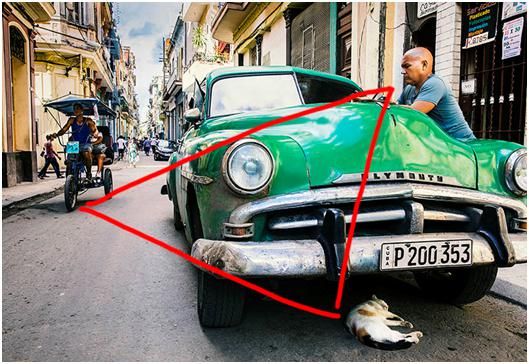 我們看到下面這張圖也是以對角線的構圖形式,只不過這個對角線從畫面中明顯的看不出它是一個對角線,而是畫面中一些重要元素形成的一個對角線趨勢,我們暫且把它稱之為暗對角線。