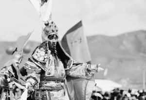 查郎寺格薩爾大王獅龍宮殿藏戲團(tuán)演員在青海果洛藏族自治州瑪域格薩爾文化旅游節(jié)上