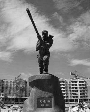 1952年10月14日,上甘嶺戰(zhàn)役打響,龍世昌主動要求參加爆破組。戰(zhàn)斗中,他英勇頑強(qiáng),在身體多處受傷的情況下,采取投擲手榴彈、利用敵人尸體等手段聲東擊西,炸毀多座敵人地堡。在摧毀最后一座地堡時(shí),他將拉燃的爆破筒塞進(jìn)敵人地堡,但剛一松手,敵人將爆破筒推了出來,他揀起冒煙的爆破筒又塞了進(jìn)去,敵人又拼命地向外推,最后,他奮不顧身地用胸膛緊緊頂住爆破筒。隨著轟隆一聲巨響,地堡炸毀了,龍世昌也永遠(yuǎn)留在了上甘嶺,留在了異國的土地上。