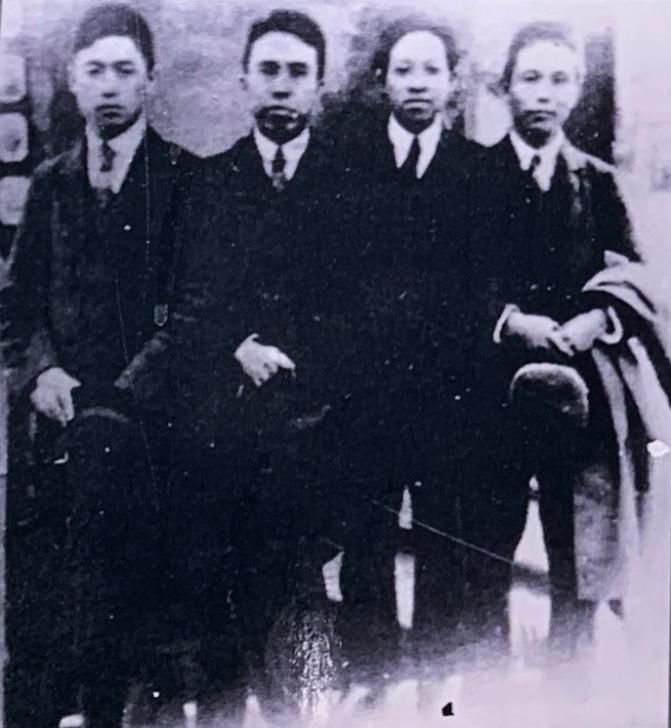 王若飛(右二)在法國(guó)勤工儉學(xué)期間和同學(xué)留影(許覬佳攝于貴陽(yáng)市達(dá)德學(xué)校舊址)
