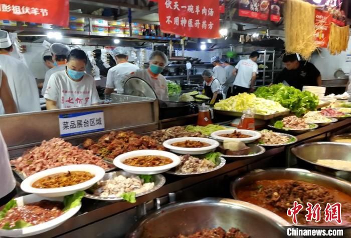記者走訪徐州市區(qū)大街小巷發(fā)現(xiàn),各大餐館、飯店提前備足了貨源,店方更是拉起橫幅,布置花籃,紛紛推出特色伏羊菜品迎賓納客。11日中午,徐州七百歲羊肉館濱湖店店長張輝介紹,飯店在伏羊節(jié)期間預(yù)計每天要用掉大概15只羊的鮮羊肉。店內(nèi)包間、大廳空桌早在一周前就被預(yù)訂滿。當(dāng)天一早,附近很多市民就帶著鍋碗來店里打羊肉湯。中午,由于吃伏羊的客人較多,一樓大廳的餐位已經(jīng)翻臺多次。“伏羊節(jié)第一天,單獨(dú)他們這一個店面最少接待顧客50桌近600人次。