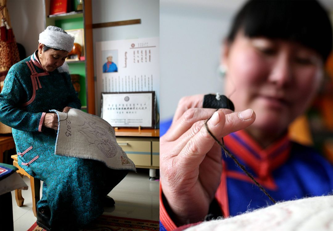 2014年,“氈繡技藝”成功入選了第四批國(guó)家級(jí)非物質(zhì)文化遺產(chǎn)代表性項(xiàng)目名錄,而如今,古老的蘇尼特氈繡技藝再一次開(kāi)始風(fēng)靡一時(shí),延伸到了抱枕、沙發(fā)墊、手機(jī)套、電腦電視機(jī)蓋布、包包、筆筒上等一系列現(xiàn)在產(chǎn)品上。