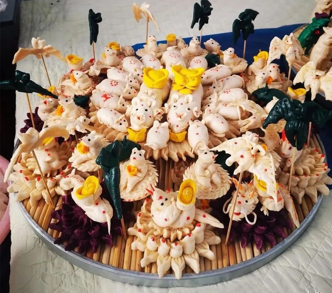 面塑,俗稱捏面人。在呼和浩特市托克托縣地區(qū)最早就用面粉為主料,用手和簡(jiǎn)單的工具捏出各種造型的面制品,然后上籠蒸熟,常用來(lái)祭祀、供奉先人、送人和人生儀禮。托克托縣地區(qū)面塑制品主要有面人、棗山山、寒燕燕、面鎖等。