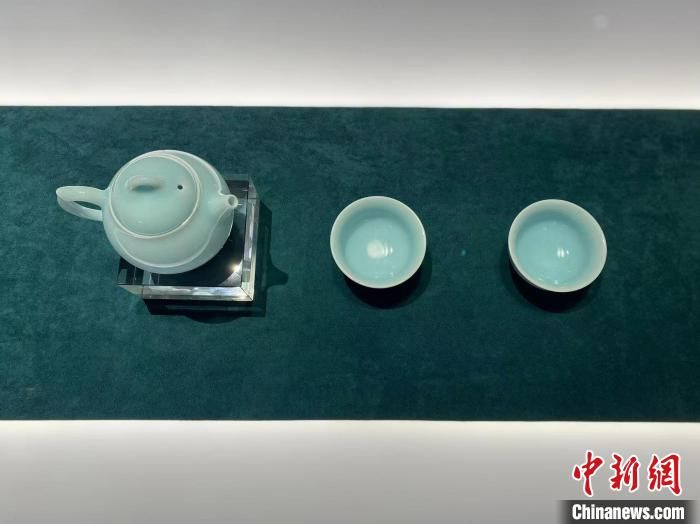 當(dāng)日展出的青瓷作品。 錢晨菲 攝