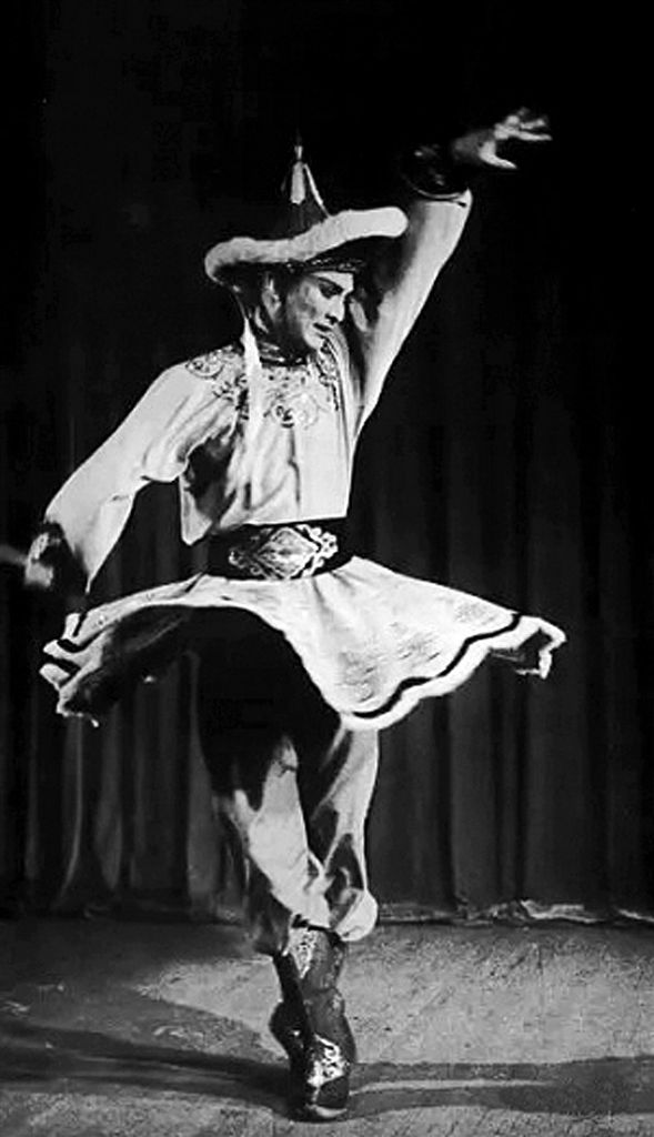 1947年,從張家口開往綏遠的列車上,有個青年目不轉(zhuǎn)睛地凝視著窗外——無邊無際的草原上,一位牧馬的漢子騎術(shù)精湛,氣魄勇猛,手中揮舞著套馬桿于馬群中自由穿梭,剽悍而又豪邁?!熬褪沁@個感覺!”青年靈光乍現(xiàn)。不久,雄渾激昂的《牧馬舞》在舞蹈界引起轟動,尤其是那策馬揚鞭的動作,節(jié)奏明快剛?cè)嵯酀蘸笤跓o數(shù)蒙古舞作品中反復出現(xiàn)。編創(chuàng)這支舞蹈的青年就是著名舞蹈表演藝術(shù)家、編導藝術(shù)家賈作光。