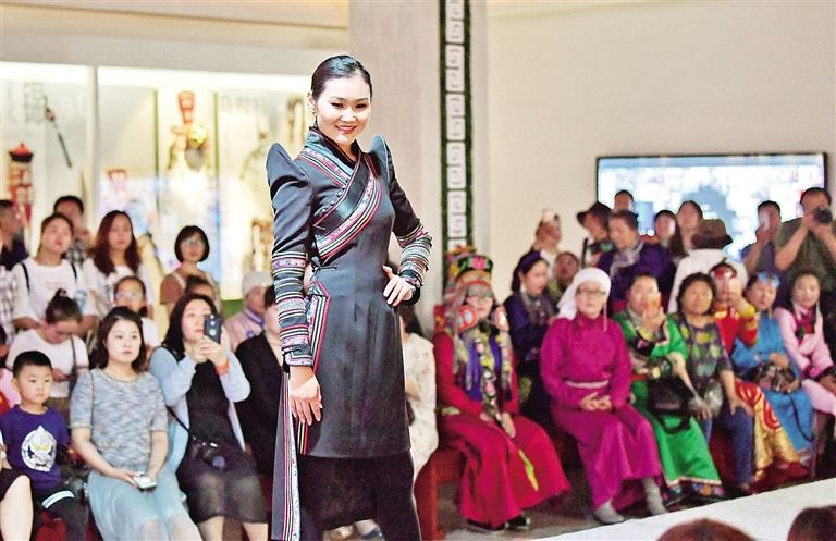 在保持傳統(tǒng)文化特色的同時(shí),與現(xiàn)代審美需求、生活需求和工藝技術(shù)有機(jī)結(jié)合,設(shè)計(jì)生產(chǎn)出更多時(shí)尚化、生活化的蒙古族服飾,滿足不同消費(fèi)者的需求……新時(shí)代對(duì)民族服飾提出了更高的要求。