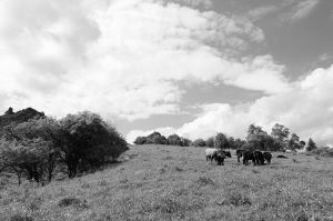 甘南的天空分外藍(lán),白云像輕紗一樣在空中飄蕩,河水從西面湍急而下,沖刷著鵝卵石,發(fā)出嘩嘩的擊打聲,和簌簌的風(fēng)聲一起,在空曠的草原上合奏出輕快的樂曲。都說高原的天氣瞬息多變,剛剛還藍(lán)天白云透著明媚的陽光,突然云量增多,將太陽完全遮擋住,一陣急風(fēng)掠過,一場不速之“雨”傾盆而下,瞬間淋濕了迷戀美景的游人,躲閃不及的人們無所適從,放羊的牧民也急匆匆地收拾著晾曬的衣服,動作敏捷而熟練,看得出來他們早已習(xí)慣了這樣的天氣。