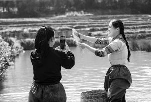 云南紅河哈尼稻作梯田系統(tǒng)被認定為全球重要農(nóng)業(yè)文化遺產(chǎn)。圖為當?shù)卮迕裨谔萏锱灾辈プヴ~。 陳欣波攝