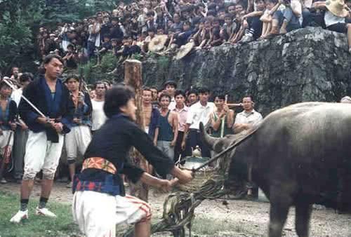 砍牛、打銅鼓是白褲瑤為死者舉行葬禮的儀式,整個葬禮悲壯、肅穆,祭祀場面氣氛凝重莊嚴,這種傳統(tǒng)送喪習俗,既是表達遺屬對死者的悼念,也是一項眾人共同的祭祖活動,銅鼓、皮鼓,是葬禮活動的主要打擊樂器。