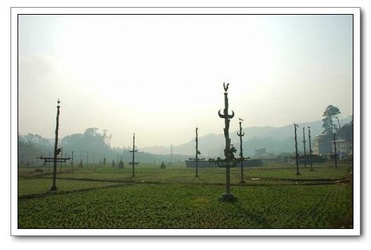 至于安在蘆笙柱下方的十字架模型,那純屬是為了供人們?cè)诖堤J笙時(shí),倚放和掛靠蘆笙而特意設(shè)立的。