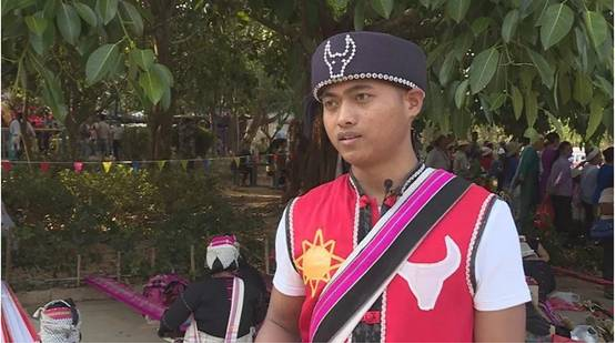 翁嘎科魏明介紹:“佤族男服飾以黑或者與紅、黑白、黑紅為搭配,女服飾裙子是純手工藝以黑白、黑紅為主基調, 頭飾是用銀白色的頭飾進行裝飾,裹著一層類似于項鏈一樣的飾品,最原始的頭飾還是用黑布裹起來的,演變到現在的話還需要做一些裝飾?!?/p>