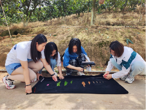三是恩樂鎮(zhèn)玻烈村芒果種植地調研。9月4日上午,實踐團成員前往恩樂鎮(zhèn)玻烈村芒果種植地,對基地的病蟲害情況進行調研。調研中,種植戶向實踐團成員詳細介紹了基地的氣候條件、技術管控以及所使用的肥料和農藥。通過種植戶的介紹以及實地觀察,實踐團成員結合所學知識,指出了種植基地存在的病害和發(fā)生規(guī)律,并給出了具體防治意見。