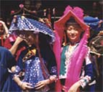 惠東女服飾文化源遠(yuǎn)流長(zhǎng),其形成、發(fā)展過程一直是中外人類學(xué)、民俗學(xué)專家關(guān)注的課題。其來源有種種傳說,目前尚無定論。據(jù)史料記載,清代中后期,惠東婦女上穿黑色或紫色長(zhǎng)袖挖襟衫,下穿黑色大折褲。衣長(zhǎng)、胸、腰背寬闊,下沿稍呈弧形外展,與清代流行的“大夫衫”(長(zhǎng)式挖襟衫)類似。不同的是袖口偏窄,袖子接長(zhǎng),故名“接袖衫”又名“卷袖衫”接袖的用意十分有趣,為的是讓新娘入洞房時(shí)提起長(zhǎng)袖以遮掩一臉羞紅;過了3日,才在長(zhǎng)袖一半處翻卷逢住固定。到了清未“接袖衫”各部分略為收縮,衣沿弧度加長(zhǎng),臂圍寬度加闊并向外彎展,腰圍處的中式紐攀減少,兩個(gè)連在一起,袖口繞藍(lán)布邊。領(lǐng)圍上刺繡圖案由簡(jiǎn)變繁,領(lǐng)根下方形色布改為三角形。胸、背中線兩側(cè)綴做兩塊方形黑色、深褐色綢布,其四邊各鑲接一塊三色形色布,改稱“綴做衫”。褲子為“大折褲”又名“大筒褲”,俗稱“漢裝褲”。褲一般用黑色布,也有用藍(lán)色的。褲腳寬約1.2尺,褲頭約2尺,縫一道5寸的藍(lán)色布邊。其樣式從清代中后期至今沒有多大變化,惟質(zhì)料由舊時(shí)用粗布,今天改為通用黑綢布?;輺|女服飾,歷來重視腰以上部分,特別以頭飾最為突出,花樣繁多,不同場(chǎng)合、不同年齡的頭飾有明顯區(qū)別。