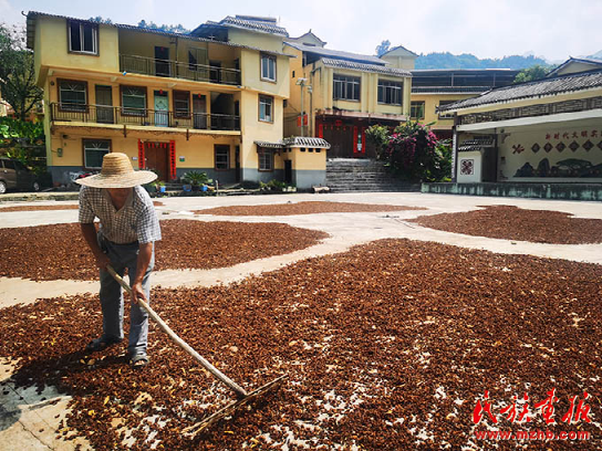 9月23日,為慶祝第五個中國農(nóng)民豐收節(jié),羅運村村民盤石輝等人通過《十二月耕作歌》《釣魚舞》《黃泥鼓舞》等歌舞形式,慶祝今年村里八角、甜茶、竹筍等產(chǎn)業(yè)喜獲豐收。