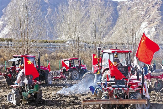 曲水縣協(xié)榮村機(jī)械化春耕春播現(xiàn)場。 記者 格桑倫珠 實(shí)習(xí)生 達(dá)娃宗巴 攝