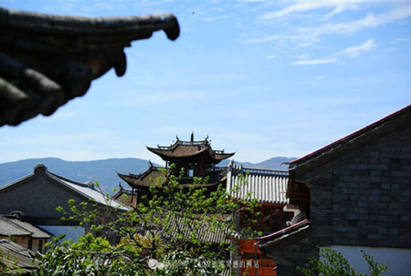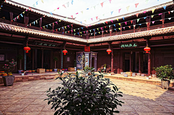 雖然經(jīng)過歲月侵蝕,但院落的每一個角落,無論是精心裝飾的門楣還是匠心獨具的花窗,盡管經(jīng)過了多少年的風雨,依然令人感到當年的氣魄和獨有的魅力。在馬如驥大院的二樓,那藻井的彩繪今天依然清晰美麗,有彩繪《三文筆》、《阿文學校》、《雞足山莊嚴塔》、《上海街景》。特別是彩繪《上海街景》,被專家視為不可多得的珍貴資料,它不僅惟妙惟肖的再現(xiàn)了當年十里洋場上海灘的風華,還體現(xiàn)了馬幫商人的開放胸襟和開闊眼界,體現(xiàn)了對現(xiàn)代化生活的向往和對未來的憧憬。