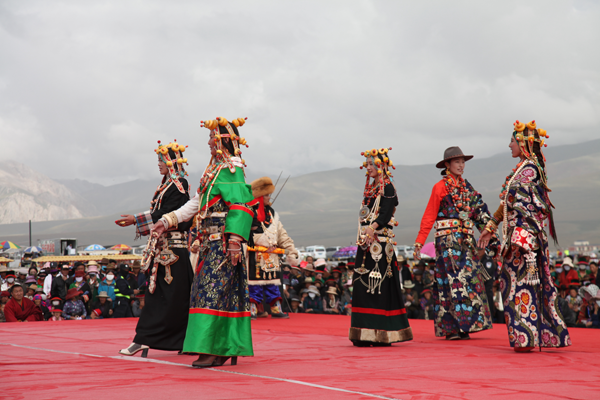 藏族人喜歡珠光寶氣的配飾,普遍用珠寶、金銀、玉器等配飾物裝扮自己,并將其看作是財富和美的象征。藏族的配飾物很多,從頭到頸、耳、胸、腰、腕、指、腿、腳都有。