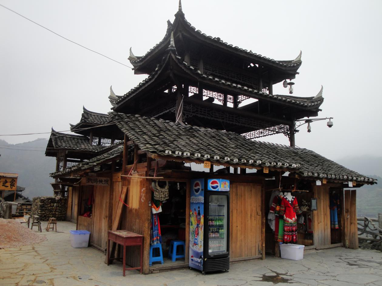 苗家人喜歡木制建筑,一般為三層構(gòu)建,第一層是為了解決斜坡地勢(shì)不平的問(wèn)題,所以一般為半邊屋,堆放雜物或者圈養(yǎng)牲畜,第二層為正房,第三層為糧倉(cāng),有的人家專門在第三層設(shè)置“美人靠”供青年姑娘瞭望及展示美麗,以便和苗家阿哥建立關(guān)系。
