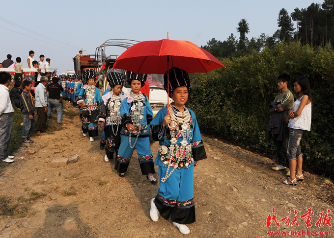 苗族接親,車到婆家。武吉海攝,引自民族畫報