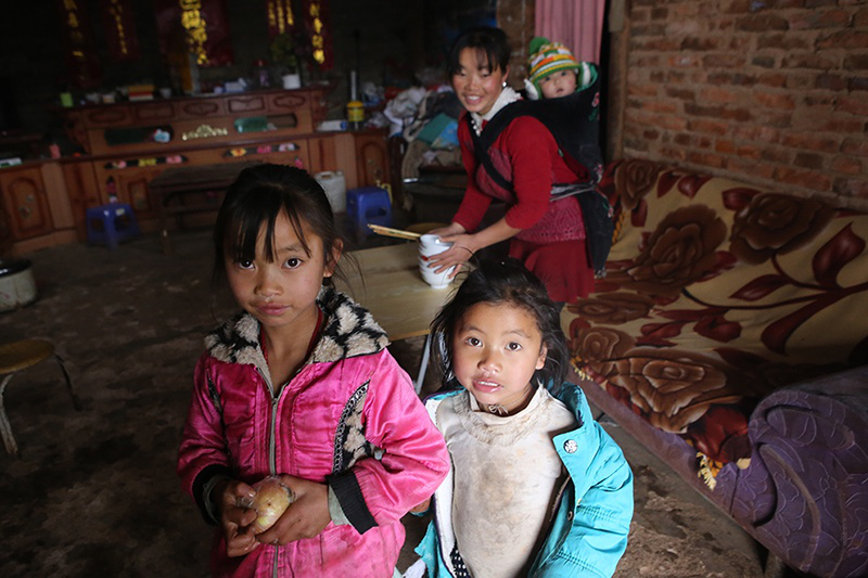 美芬的媽媽是個(gè)非常聰慧能干、愛說愛笑愛打鬧的人,喜歡開玩笑,也能看出很隱忍。在美芬媽媽的鼓動(dòng)下,我和她在花山場玩起了打木秋。木秋比我小時(shí)候玩過的蹺蹺板大了好幾倍,最高處離地估計(jì)有五六米,每次對(duì)方雙腳蹬地彈起時(shí),我這邊就會(huì)以失重的感覺落地。那種在風(fēng)中快速下降的緊張刺激只有通過尖叫才能釋放,而每次我失控大叫的時(shí)候,底下村民都會(huì)一片哄笑。下了木秋,感覺還在騰云駕霧。美芬的媽媽過來架著我的胳膊哈哈大笑,像個(gè)小姑娘。她40歲不到,但常年勞累以及沒有好好保養(yǎng),看上去比實(shí)際年齡大了不少。聊起女兒的未來,她呵呵一樂說:“我不擔(dān)心她嫁不出去,讀好書再說。我當(dāng)年是沒有其他機(jī)會(huì),所以早早結(jié)婚了,她現(xiàn)在有條件了,那么著急做什么!”