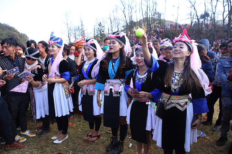 由于在歷史上經(jīng)歷長時(shí)間、大范圍的遷徙,苗族文化形成了較強(qiáng)的環(huán)境適應(yīng)能力和流動(dòng)變遷特征。節(jié)日作為民族文化的凝集點(diǎn),慶祝方式和形態(tài)也處于動(dòng)態(tài)的演變和傳承之中。在大布紅的花山場,一個(gè)從老撾過來的苗族女子樂隊(duì)讓當(dāng)?shù)氐拿缱迦烁械胶闷妗f著同樣的西部苗語,卻穿著略顯不同的衣服。她們排成一行,教人們一來一往地扔繡包,一時(shí)間圍觀者無數(shù)。不消多久,女子樂隊(duì)手中的CD就在人群中銷售一空。
