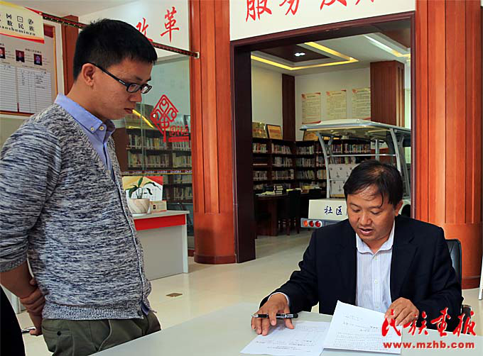 社區(qū)辦事大廳里,黨支部書記現(xiàn)場(chǎng)辦公解決實(shí)際問題