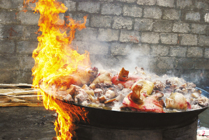 壩壩宴最能體現(xiàn)出金陽人的飲食文化。但要吃出味道,吃出氛圍,則大有講究。在形式上,吃飯聲勢(shì)要大,食客多多益善。在內(nèi)容上,肉要多,平均每個(gè)人至少有5塊坨坨肉。如果不夠吃,辦酒的主人家就會(huì)覺得丟臉,別人也會(huì)有所議論。一般來講,一桌上一盆肉,8斤左右為宜。