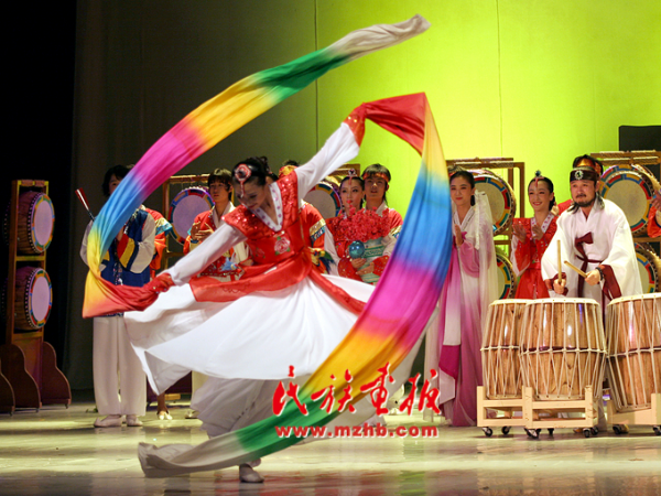 朝鮮族舞蹈種類繁多,各具特色。除了傳統(tǒng)的農(nóng)樂舞、象帽舞、長鼓舞和頂水舞之外,還有雄壯的刀舞、典雅的扇子舞、神秘的假面舞等等,它們或舒緩,或剛毅,或柔美,或稚拙,輕歌曼舞間,你仿佛觸摸到了一個古老民族的靈魂,它是那么深沉內(nèi)斂,又是那么熱情奔放!