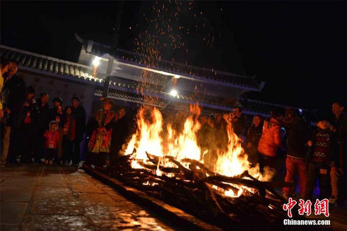 12月6日夜晚,在中國瑤族之鄉(xiāng)廣西金秀瑤族自治縣瑤族百姓在盤王節(jié)上,展現當地瑤族民間絕技——下火海