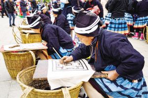 白褲瑤服飾制作需要幾個月的時間,經過紡紗、織布、描圖、蠟染、刺繡、縫制等30多道工序,其中許多工序都受季節(jié)和天氣變化的影響。